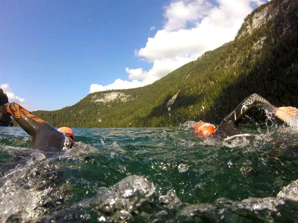 25 August 2021 für B&F unter dem Moto “ Grenzenlos“ von Süd nach Nord den Königssee Längs geschwommen. Zuerst ein kleine Runde am Obersee und dann die 8Km von Salet nach Königssee. Wasser 15°C leicht zunehmender Gegenwind, keine Begleitboote erlaub. !