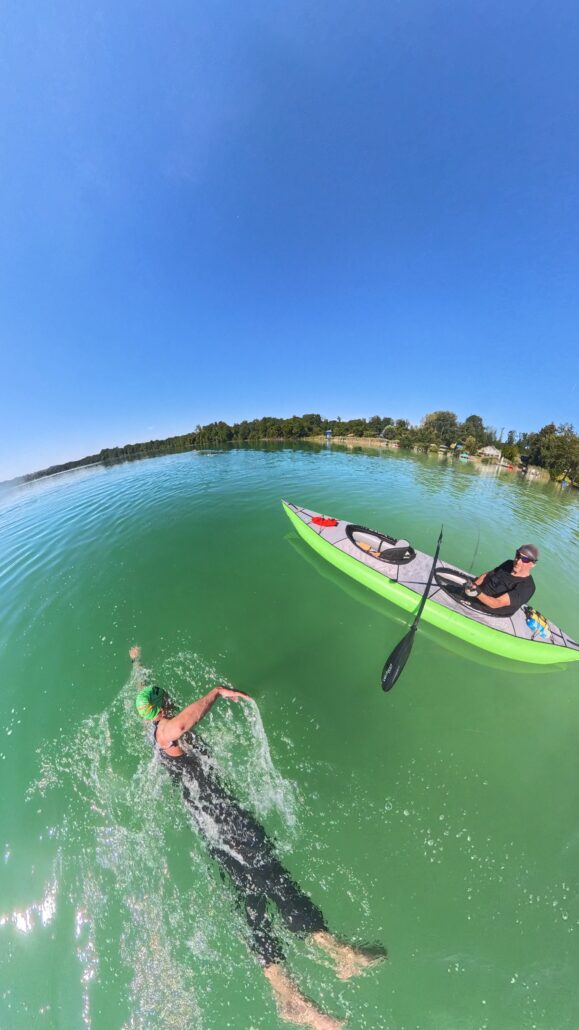 10Km Wörthsee Schwimmen mit Kajakbegleitung  mit Tom, Jochen, Kerstin und Juan