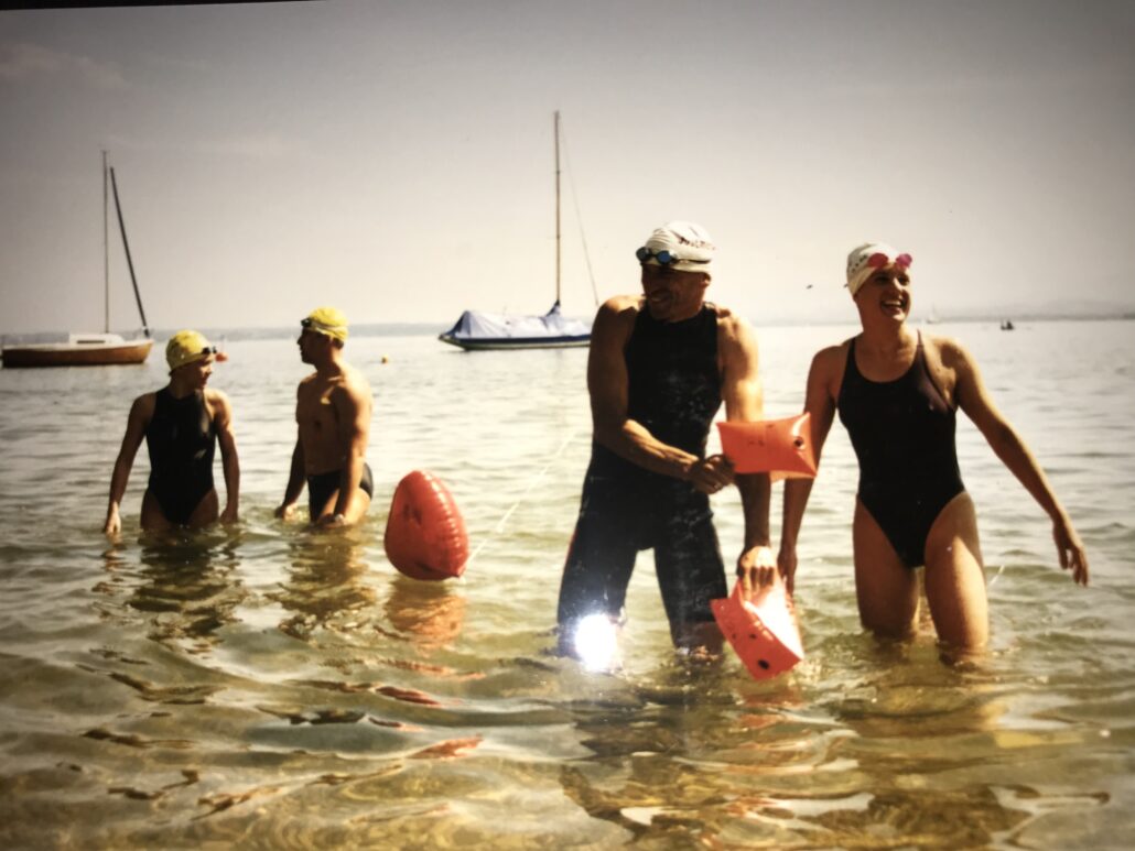 Hochzeit 2002 auf der Fraueninsel,  mit 1 Km Schwimmen Fraueninsel – Gstadt,